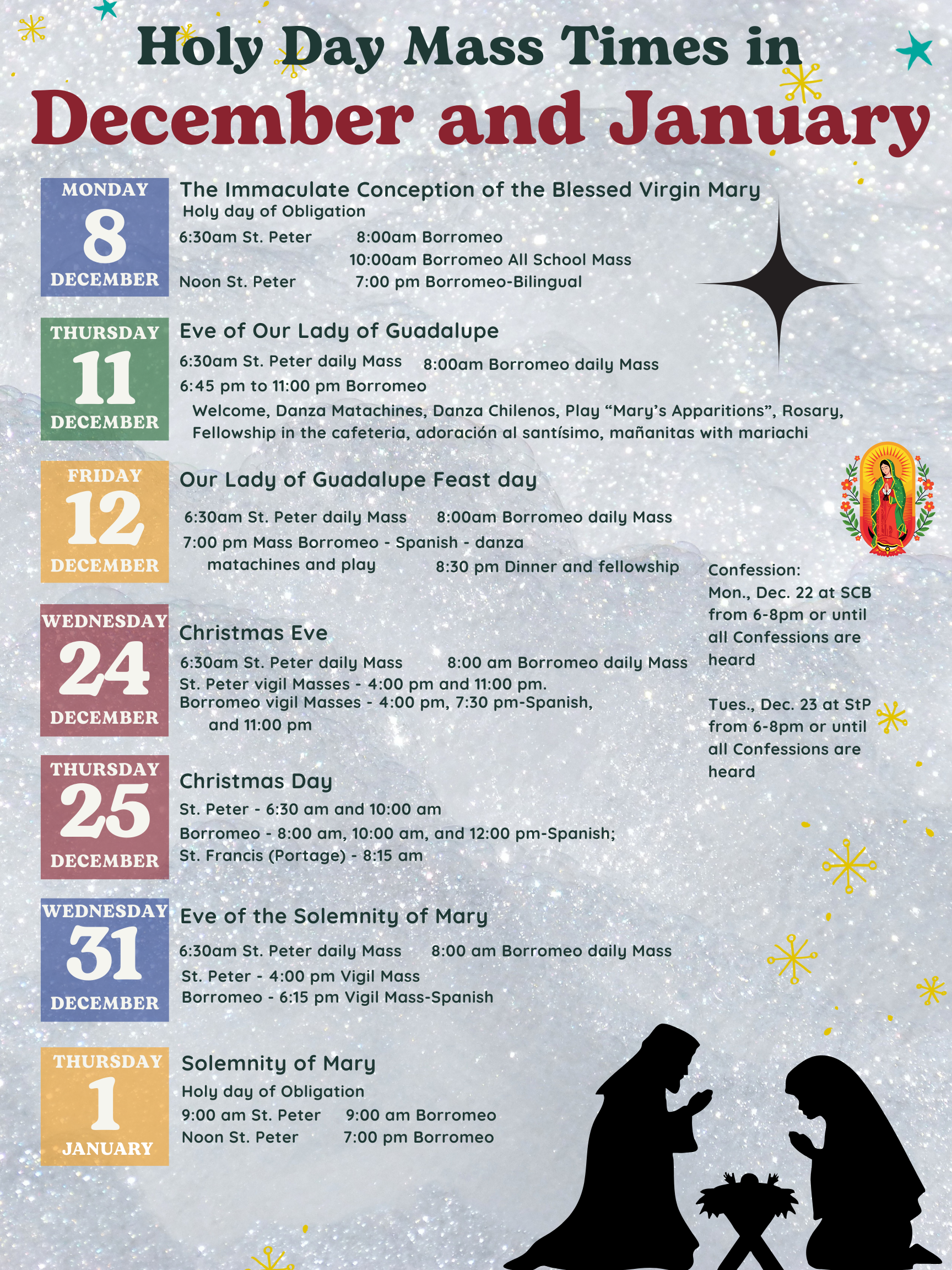 Holy Day and Christmas Mass times 2025